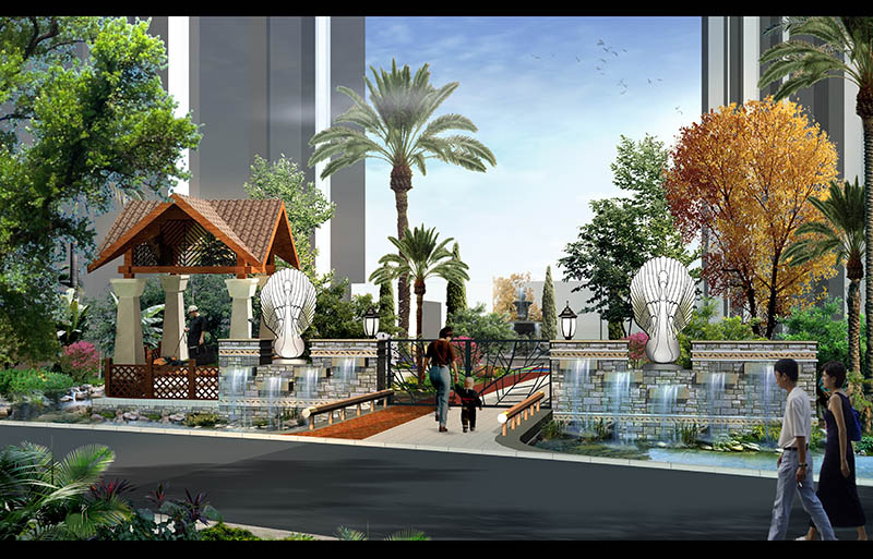 更強調親切感和可參與性,讓住戶能夠觸摸花的香、水的涼、樹的綠、雕塑的奇妙,享受精致之中濃郁的尊崇,讓生活散發異域的幽香。建筑材料和造型選擇容易