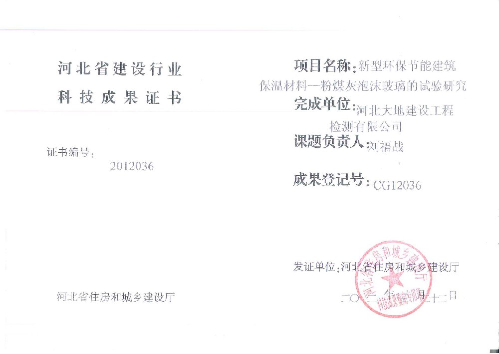 本項(xiàng)目研究采用粉煤灰為添加材料制備新型建筑保溫材料—泡沫玻璃。在研究中通過(guò)對(duì)不同的發(fā)泡劑對(duì)泡沫玻璃性能的影響,確定以碳酸鈉為發(fā)泡劑,制備粉煤灰泡沫玻璃。對(duì)比了多種穩(wěn)定劑的影響,選定以磷酸三鈉與硼酸復(fù)合作為發(fā)泡穩(wěn)定劑。確定了粉煤灰泡沫玻璃的最優(yōu)配比。通過(guò)工藝制度研究得到粉煤灰泡沫玻璃的最佳工藝制度。根據(jù)上述工藝參數(shù)和配合比生產(chǎn)出的粉煤灰泡沫玻璃性能優(yōu)良,具有質(zhì)輕、強(qiáng)度高、保溫隔熱及隔聲性能好等優(yōu)點(diǎn),抗壓強(qiáng)度達(dá)到了0.89Mpa,抗折強(qiáng)度達(dá)到了0.45 Mpa,導(dǎo)熱系數(shù)達(dá)到了0.052w.m.k,可以滿(mǎn)足建筑保溫的需要;是一種優(yōu)良的隔熱保溫與隔聲材料,可作為屋面、墻體、管道、設(shè)備隔熱保溫材料的換代產(chǎn)品,也為粉煤灰、碎玻璃的利用開(kāi)辟了一條新途徑,具有顯著的社會(huì)效益與經(jīng)濟(jì)效益。